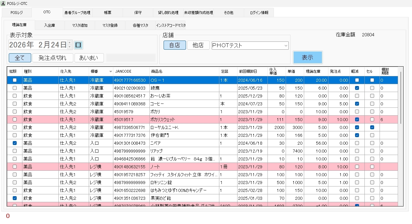 OTCの在庫管理に加え、棚卸、グループ店舗での在庫状況確認や店舗間移動、割引運用まで視野に入れた管理が可能です。レジ業務と在庫業務をつなげることで、売り場強化と管理負担の両方を整えやすくなります。