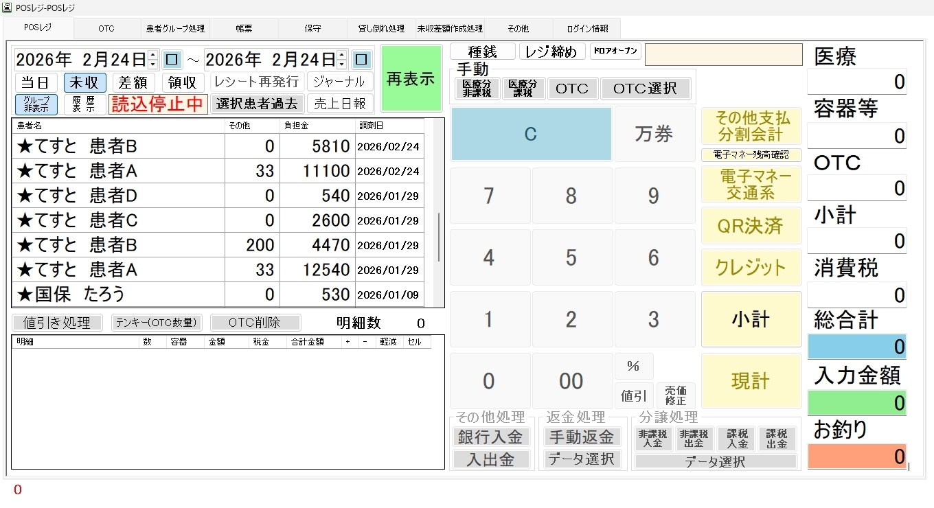 令和6年10月からの選定療養費に対応しています。長期収載品を患者様が選択した場合、後発医薬品との差額の一部を患者様が負担する仕組みです。通常の医療費は非課税対象ですが、選定療養費は課税対象となるため、会計では区分の扱いが重要です。C-POSはレセコンから出力されたNSIPSデータをもとに、非課税対象分と課税対象分を自動で合算して会計処理でき、複雑なレジ打ちのミスを防ぎやすくします。