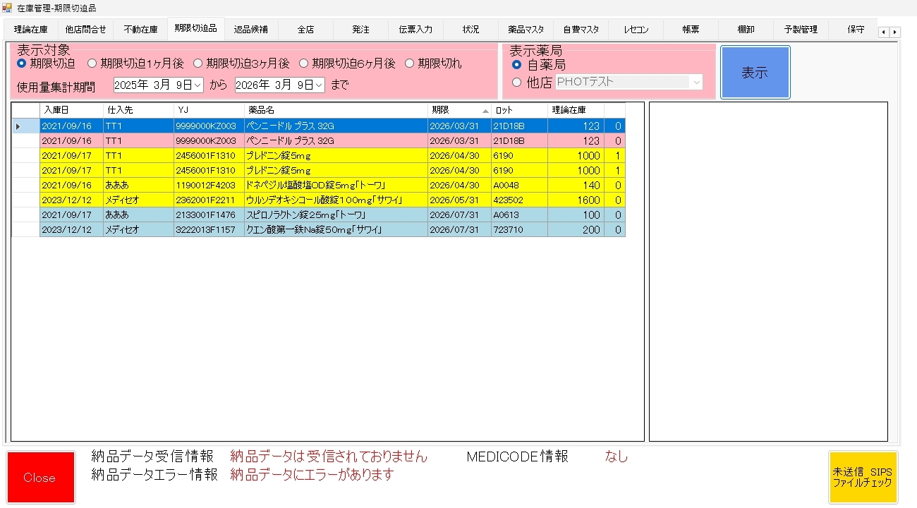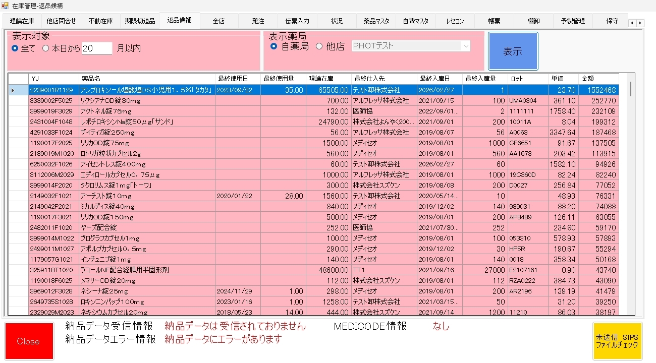 返品可能な条件に合う医薬品を抽出し、対応が必要な品目を整理できます。月末など期限のある判断でも一覧で確認できるため、見落としや確認漏れを減らします。返品か店舗間移動かの判断も進めやすくなり、廃棄リスクと損失の抑制につながります。